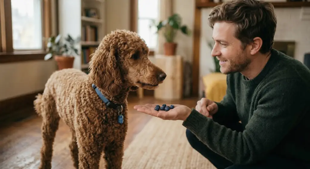 Can blueberries help with Poodle “doggy breath”? While absolutely not a replacement for routine tooth brushing or professional veterinary cleanings, the natural polyphenols found in blueberries can help inhibit the growth of certain oral bacteria. For the best dental benefit, feed them frozen; the hard texture helps gently “scrub” the teeth as your Poodle chews.