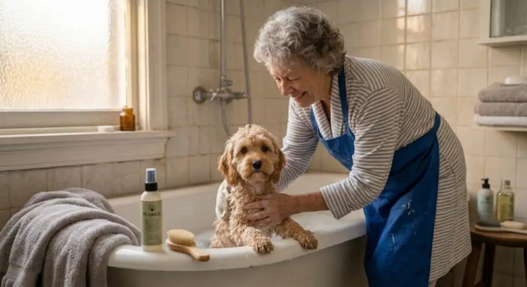 For a senior citizen dealing with arthritis, joint pain, or reduced grip strength, the repetitive wrist motion and manual dexterity required to line-brush a dog for 30 minutes a day can cause severe physical strain. Managing my Standard Poodle, Angus, taught me just how physically demanding a Poodle’s coat can be—and a Doodle’s mixed-texture coat is often even harder to comb through.