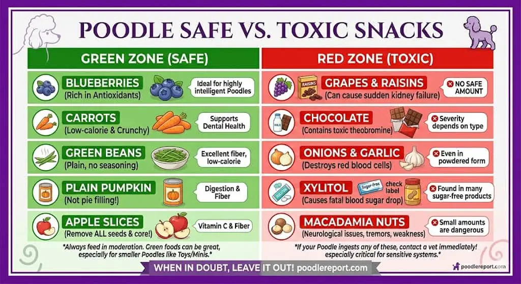 Grapes and Raisins: These can cause sudden kidney failure in Poodles. There is no “safe” amount—even one can be toxic.